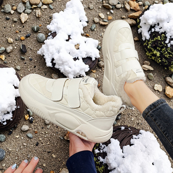 SeeMore冬のフリースライン暖かいスノーブーツランニングシューズ女性用通気性アウトドアスポーツシューズ
